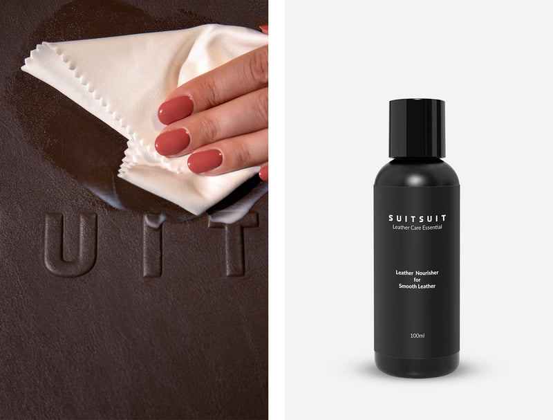 - Mit kreisförmigen Bewegungen in die Lederoberfläche einreiben.