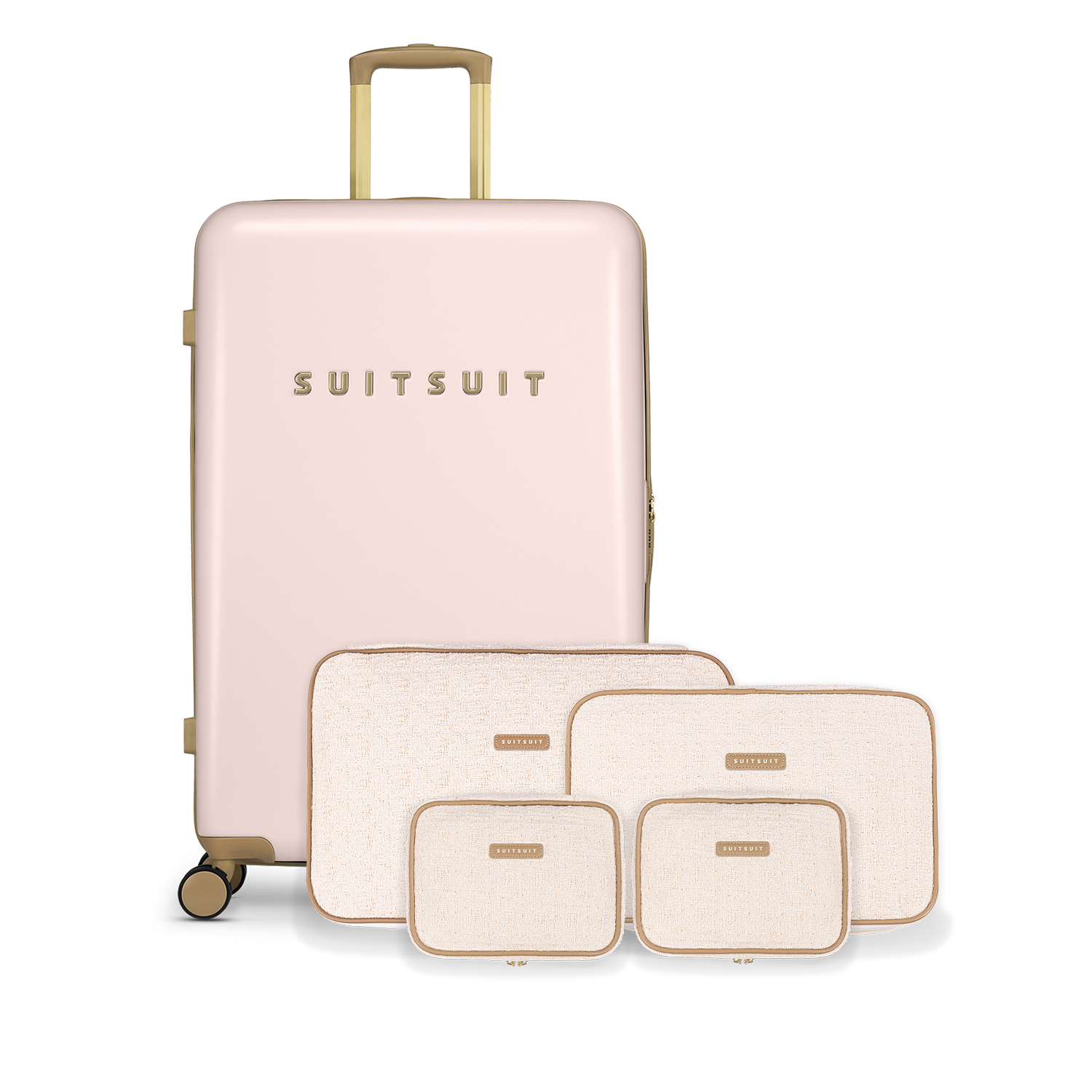 - Dieses Set besteht aus dem Rose Pearl Reisekoffer (76cm) und dem Sloppy Cotton Packing Cube Set (76cm).